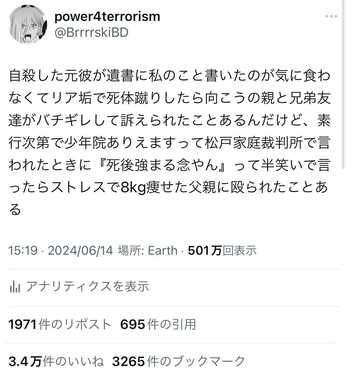 こういう露悪的なツイートで何万もいいね付くんだから現代のインターネットネイティブ世代の性格の悪さヤバいことになってそうやな