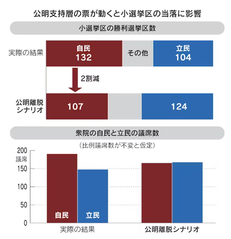 公明から自民への選挙協力なくなることの影響は色々試算とか見たけど逆はどんぐらい影響あるんや?